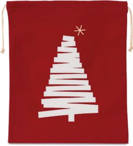 Sac coton à cordon motif sapin - Noir, Cherry Red